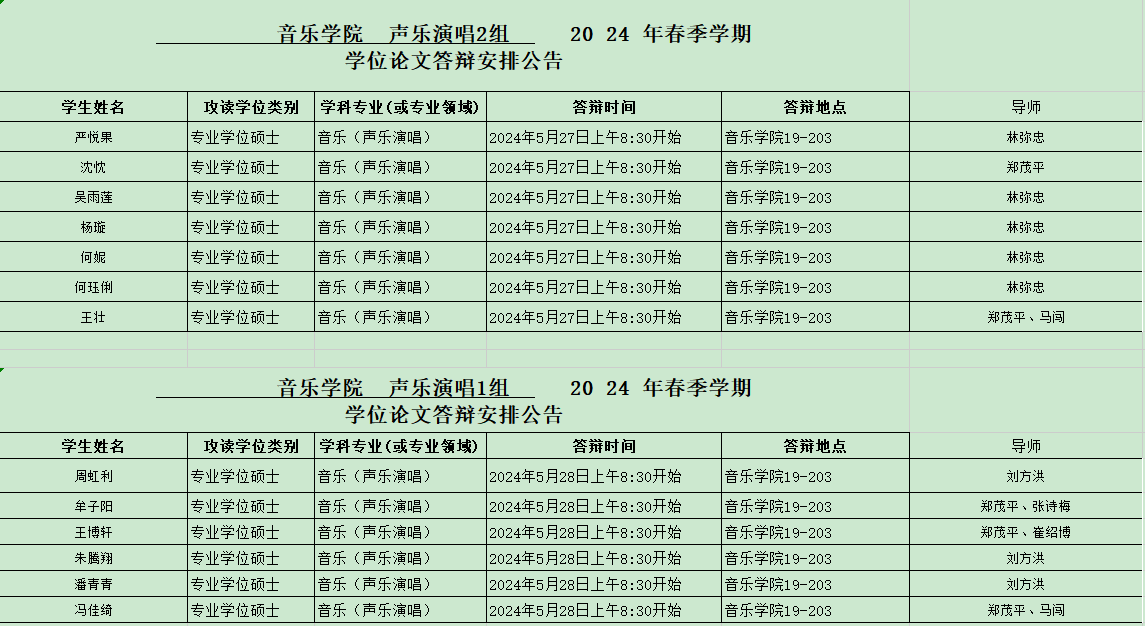 2024年西南大学必赢3003no1线路检测中心硕士研究生答辩安排——声乐演唱组