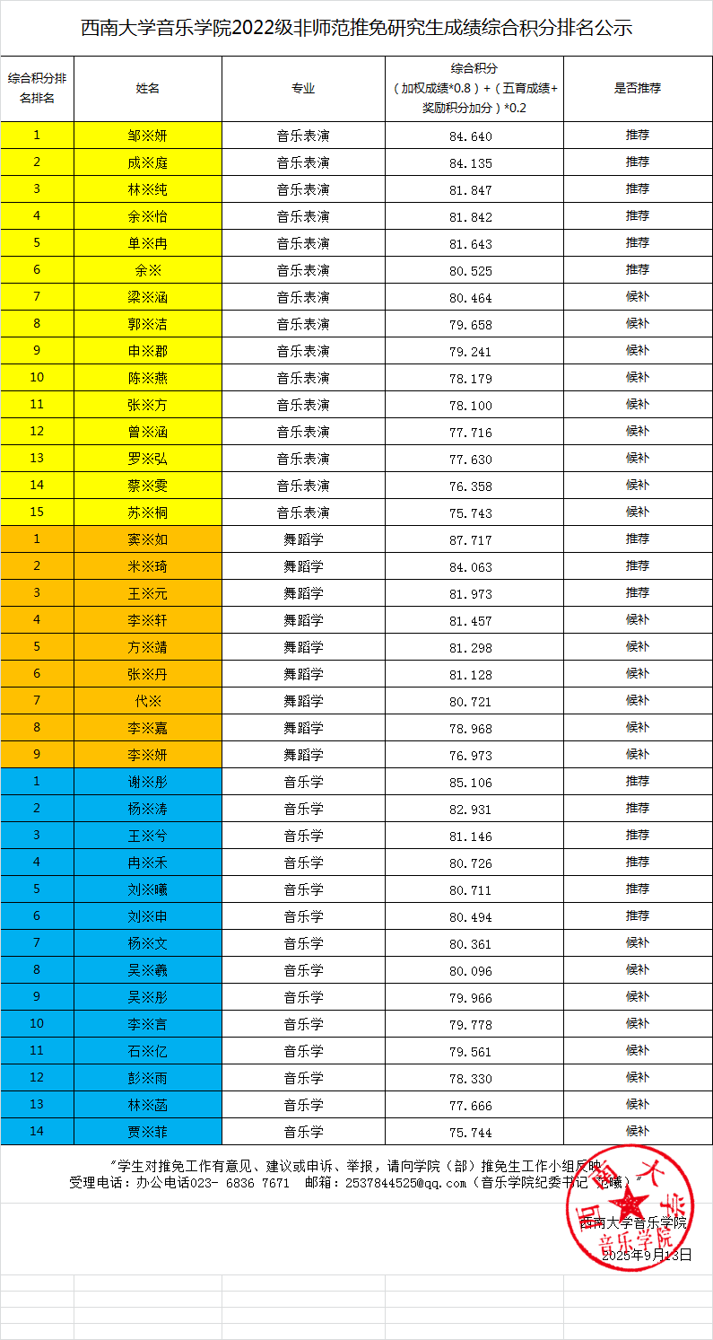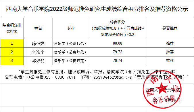西南大学必赢3003no1线路检测中心2026年推免研究生公示信息