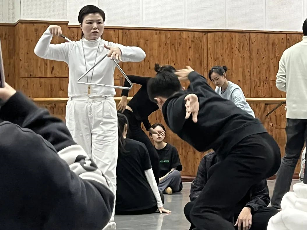 同学们穿插行走在空间中,动用身体的小关节来和打击乐演奏者对话。
