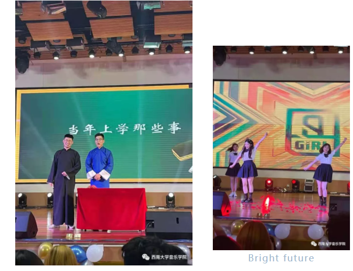 相声《当年上学那些事》勾起了大家对大学生活的无尽回忆,毕业生们深情地倾诉着对母校和学院的眷恋不舍之情。晚会中穿插抽奖活动环节,将晚会气氛推向高潮。