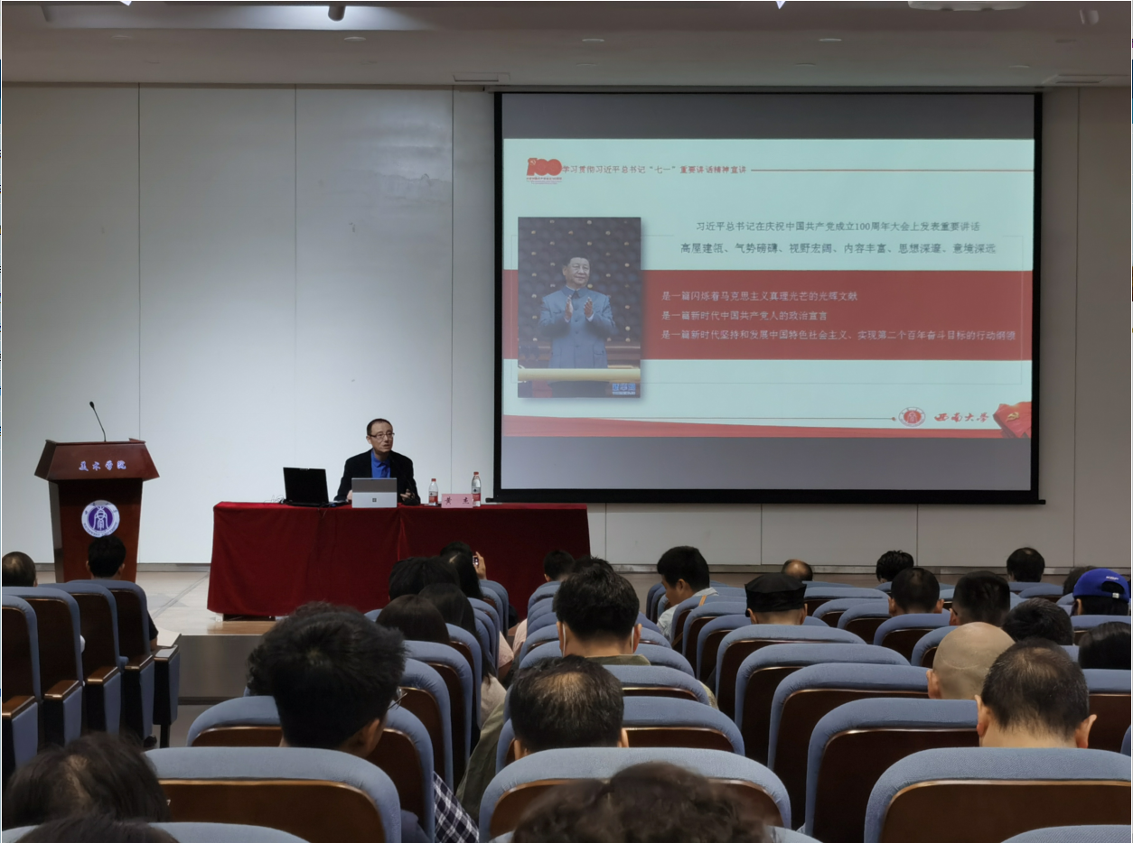 根据学校党委统一安排,10月8日下午,必赢3003no1线路检测中心与美术学院、体育学院全体教职工一道参加了西南大学学习贯彻习近平总书记“七一”重要讲话精神宣讲团分片集中宣讲会,学校宣讲团成员、党政办公室主任黄杰同志作专题宣讲。