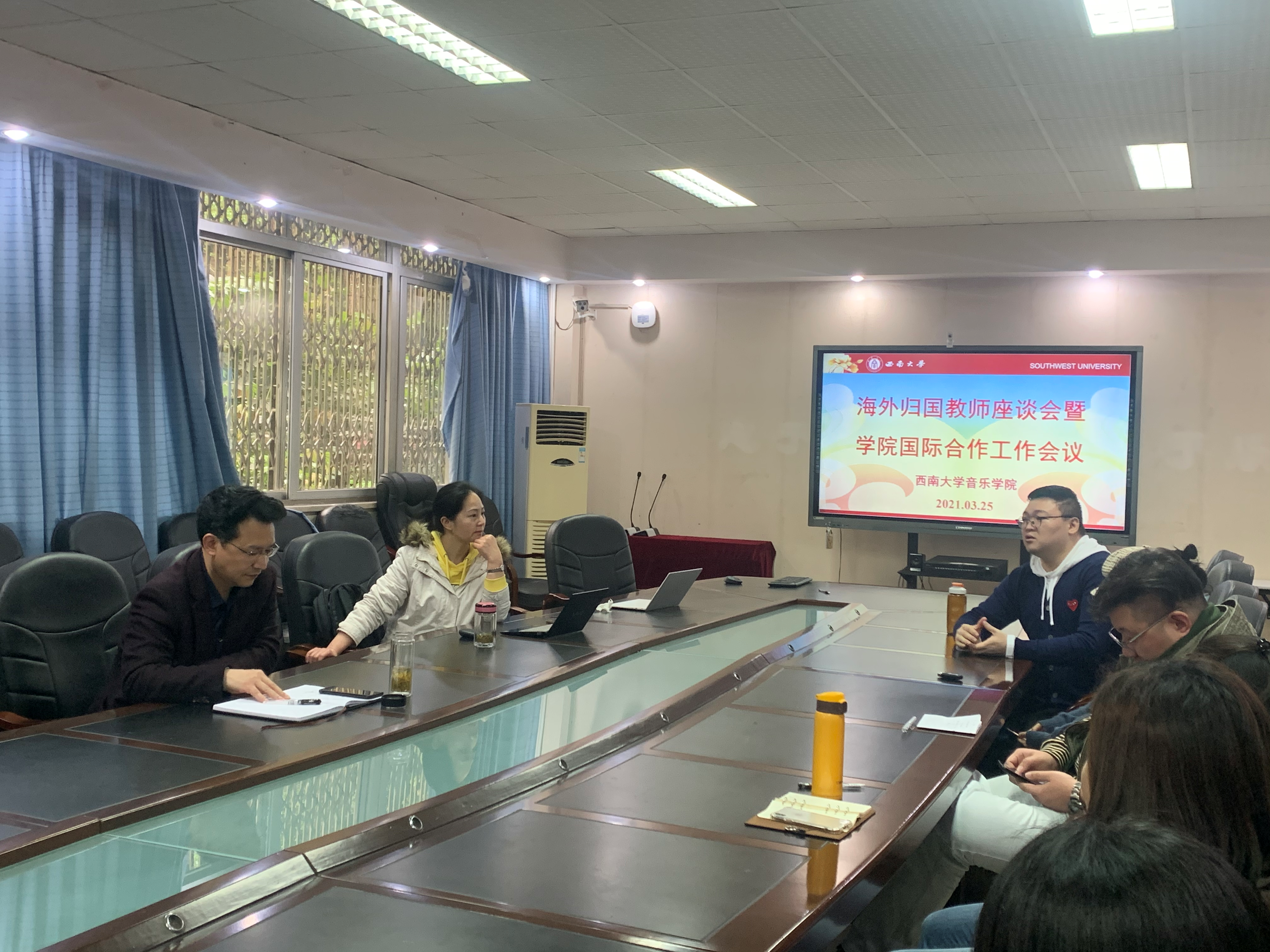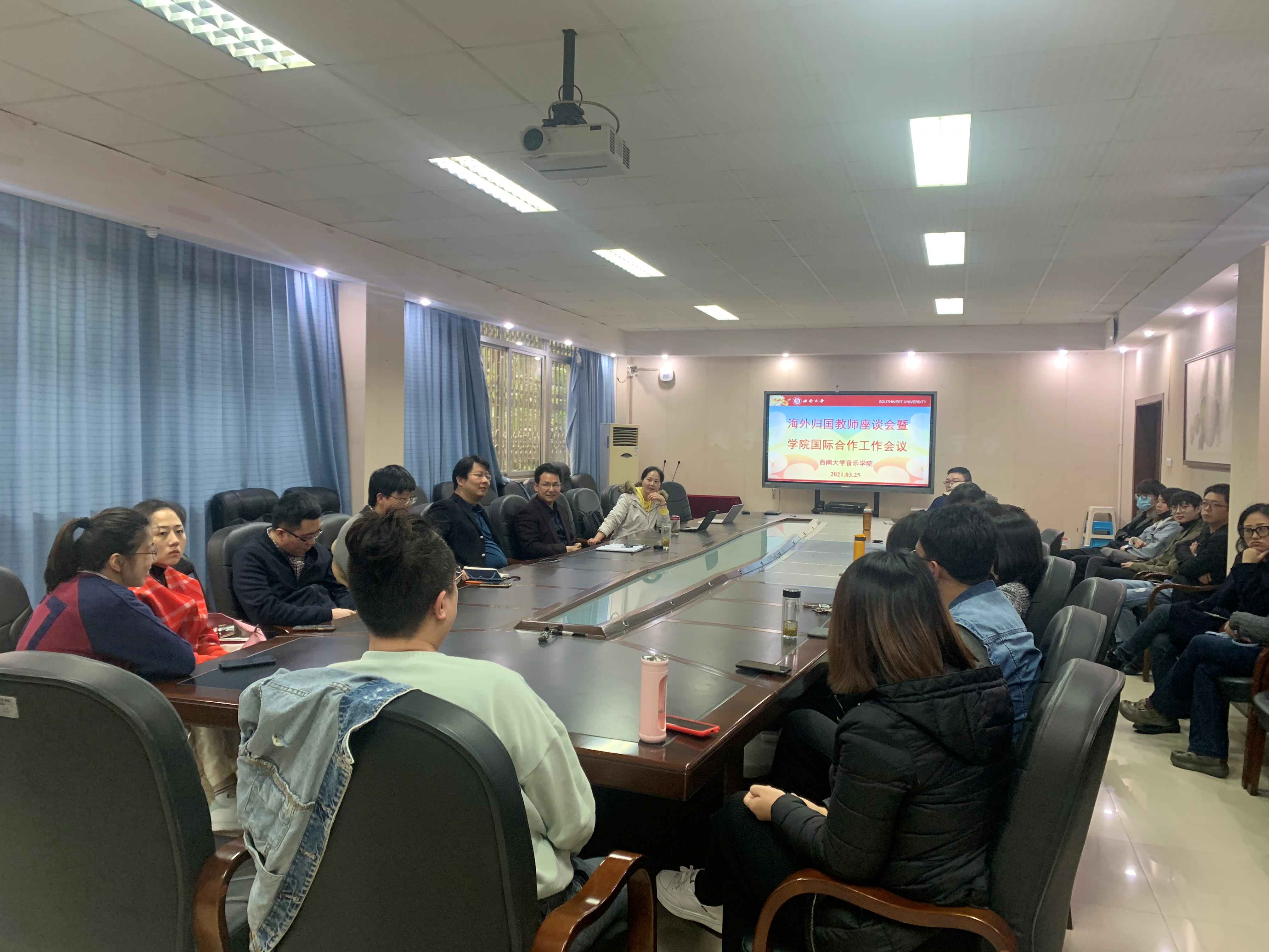为进一步提升学院人才服务质量,推进国际合作与交流工作,3月25日下午,学院召开了海外归国教师座谈会暨国际合作与交流工作会,27名有海外留学或访学经历的教师参会。