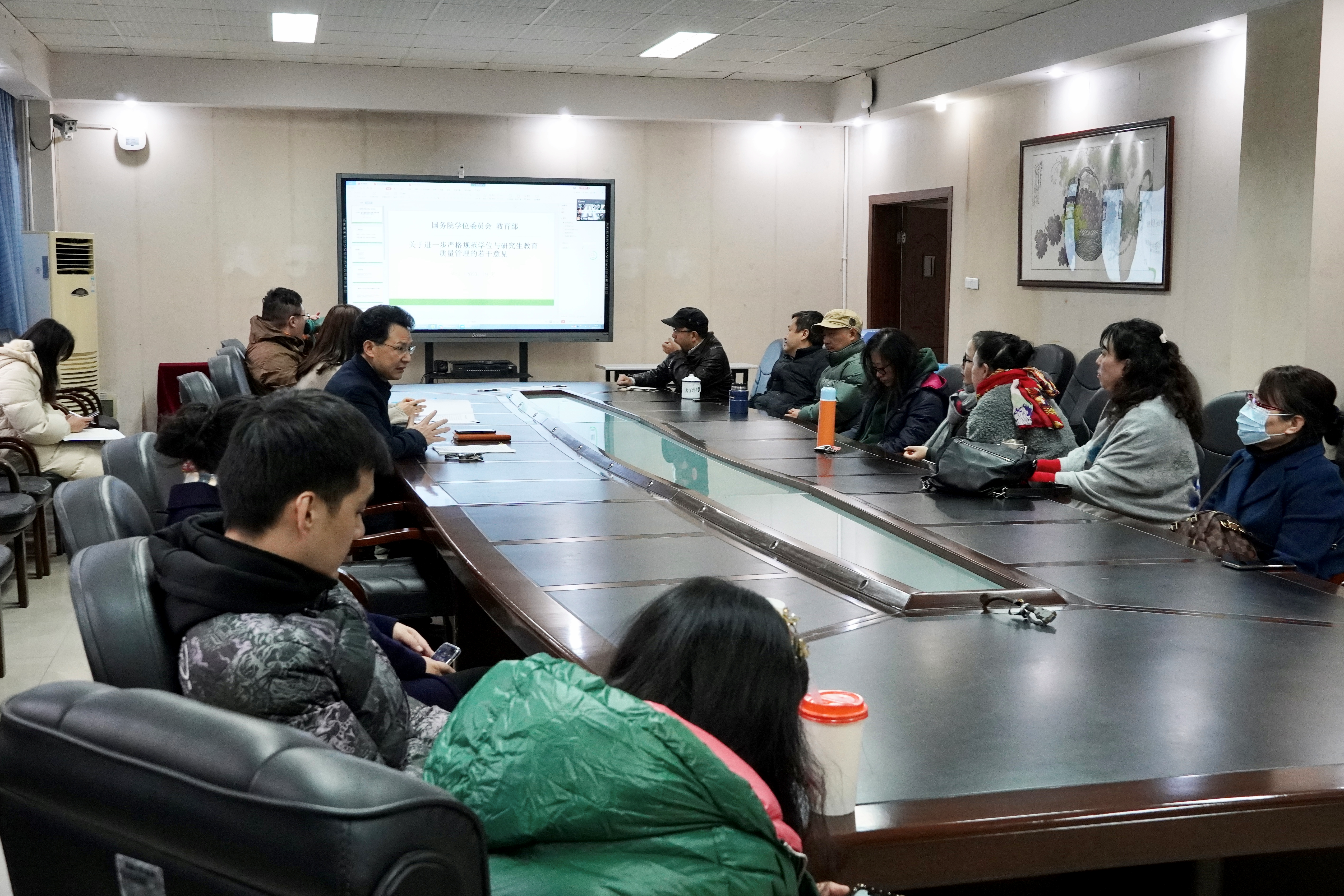 党委书记罗义文主持会议,并对《国务院学位委员会 教育部关于进一步严格规范学位与研究生教育质量管理的若干意见》主要精神作了领学和解读。
