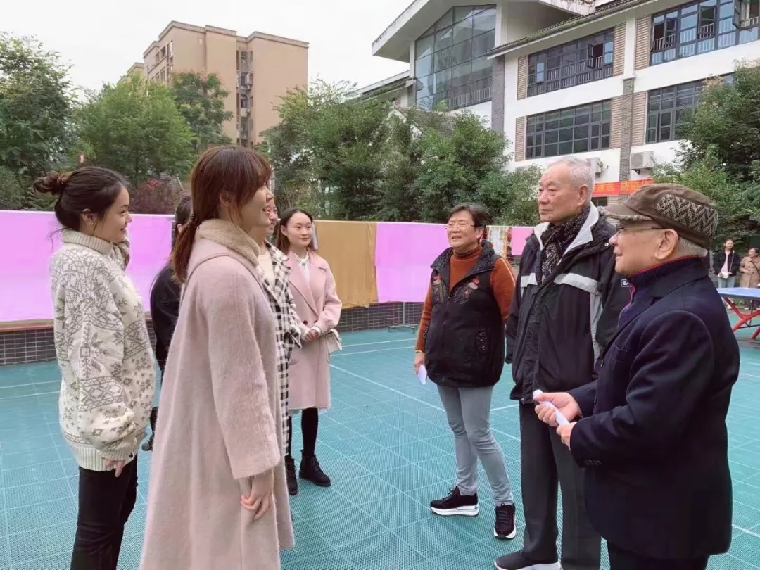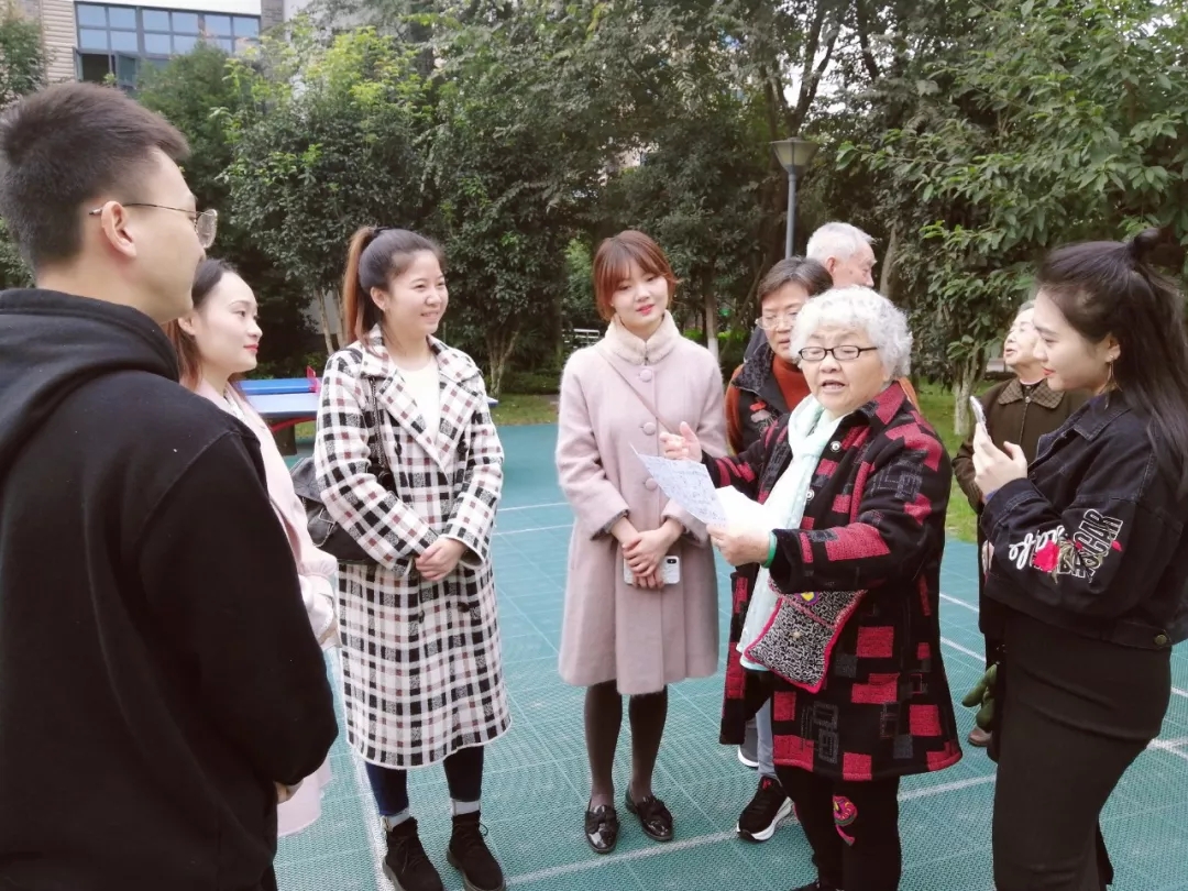 下午支部党员们在福利院的活动广场上围在一起聊着天,“同学们唱歌太好听了!”“你们这些乖娃娃真有活力!”“爷爷您在这里生活的还习惯吗?”“奶奶您看着可真年轻!”,大家互相嘘寒问暖,你一言我一语地唠着家长里短,聊得热火朝天。
