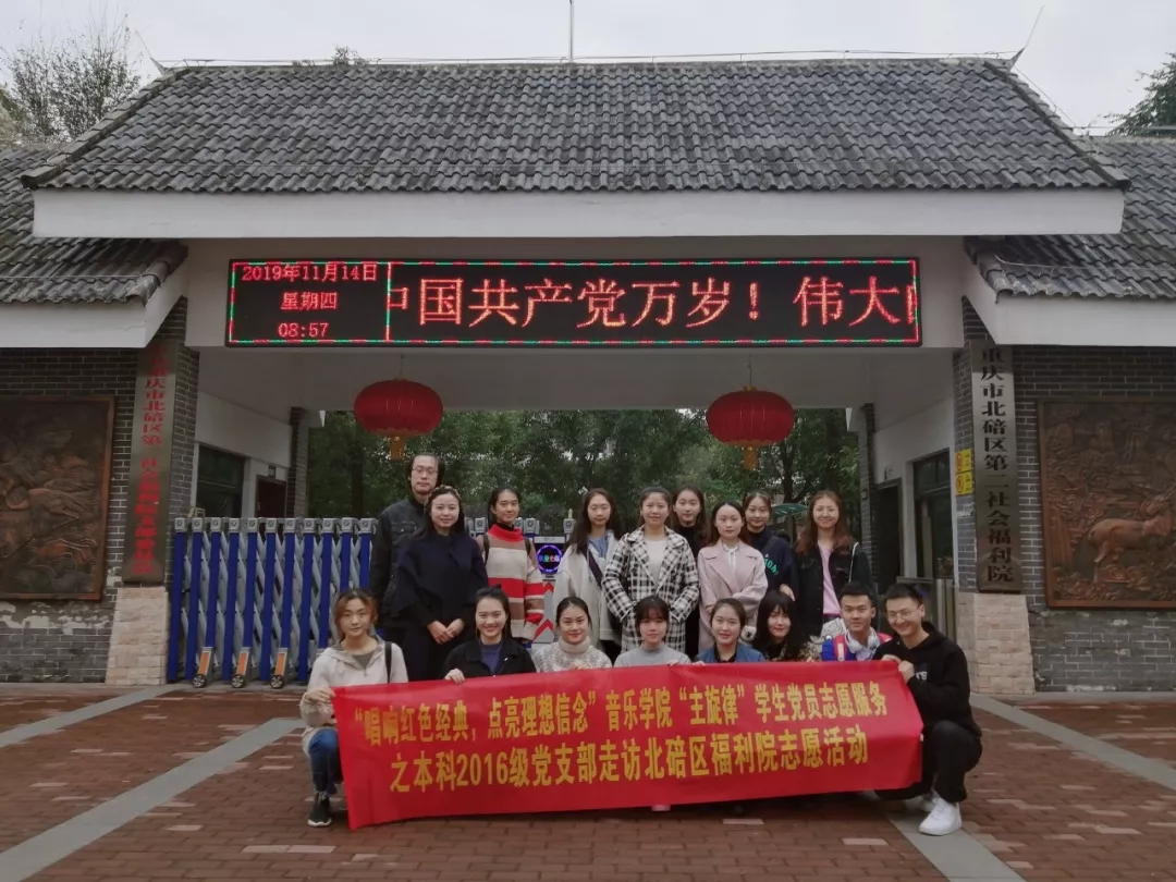11月14日,必赢3003no1线路检测中心2016级党支部李静老师带领青年党员一行18人于早晨八点从学院出发前往北碚区第二社会福利院开展为期一天的艺术志愿活动。