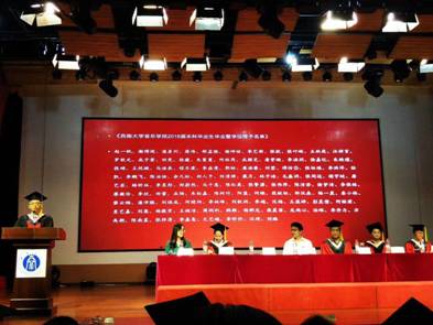 接下来,在所有毕业生及系主任的见证下,台上老师为2018届获得硕士学位的研究生和获得学士学位的本科毕业生进行了授位。当同学满怀喜悦的心情,接过老师手中的学位证书,接受老师拨正帽穗,留下珍贵照片的这一刻将成为同学们心中永恒的记忆。紧接着,教师代表彭兆雄发表了讲话,他希望2018届毕业生实现人生新的超越,创造人生新的篇章,祝愿他们前程似锦,也期待他们常“回家”看看。最后在全体老师和同学齐唱《西南大学校歌》的歌声中授位仪式圆满结束。