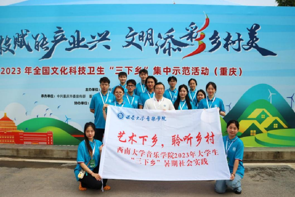 7月26日,由团市委和学校团委推荐,西南大学必赢3003no1线路检测中心“艺术下乡,聆听乡村”社会实践团参加2023年全国文化科技卫生“三下乡”集中示范活动(重庆)。