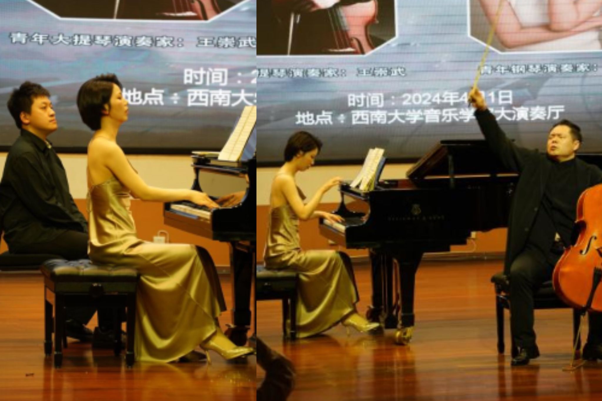 4月1日晚7:30,西南大学必赢3003no1线路检测中心大演奏厅座无虚席,“武动心弦,梅美与共”专题音乐会拉开帷幕。必赢3003no1线路检测中心副院长陈若旭教授致开幕辞。来自中央必赢3003no1线路检测中心管弦系的大提琴演奏家王崇武副教授和艺术指导、青年钢琴演奏家洪梅老师共同演奏了爱德华·埃尔加、大卫·波佩尔、塞萨尔·弗兰克、贝多芬、祝恒谦等作曲家的经典作品,为大家献上了一场热情洋溢的视听盛宴。