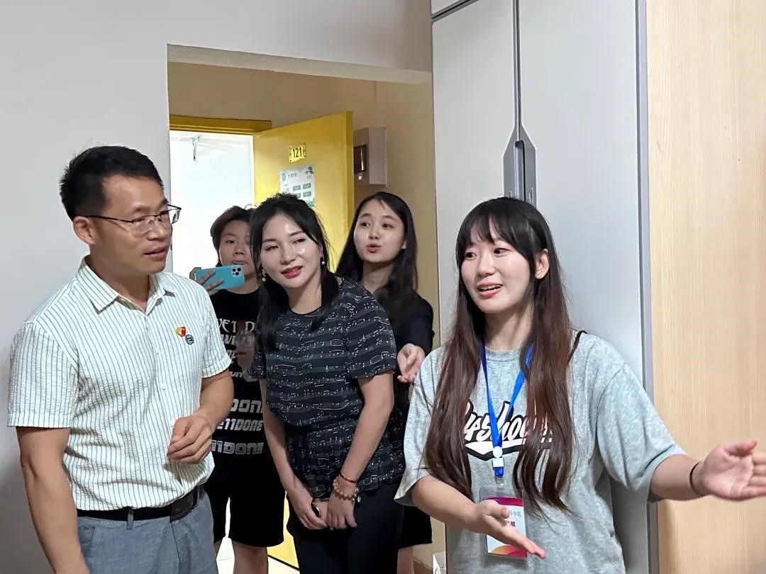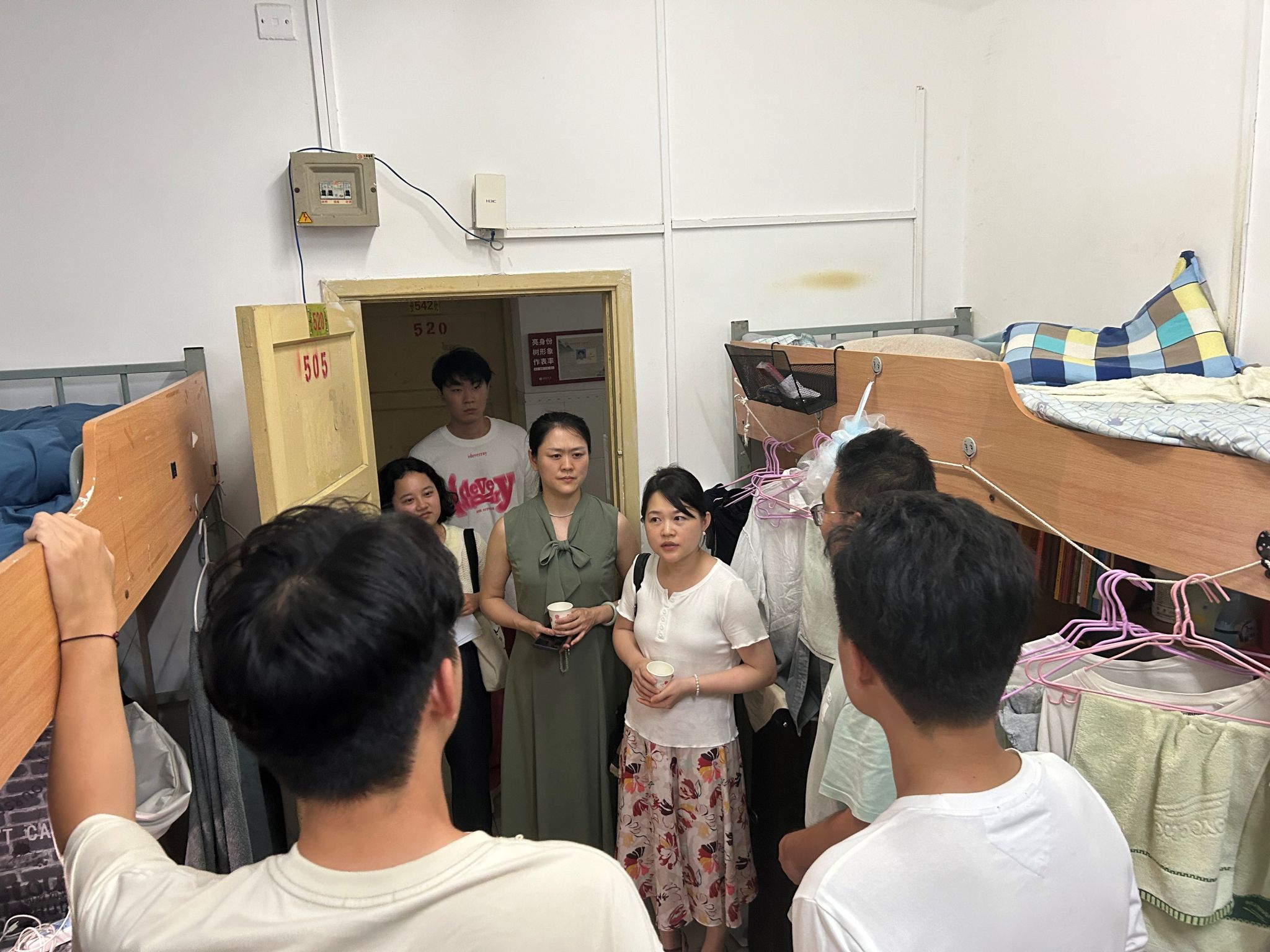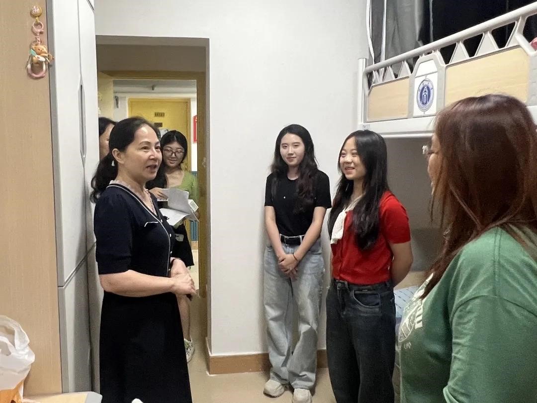 走访过程中,老师们询问大家来自哪里,是否习惯新的环境,空调是否制冷等。对于那些远离家乡的同学,老师们给予了特别的关心,鼓励他们把学校当成第二个家,同学就是家人,在这里找到归属感。