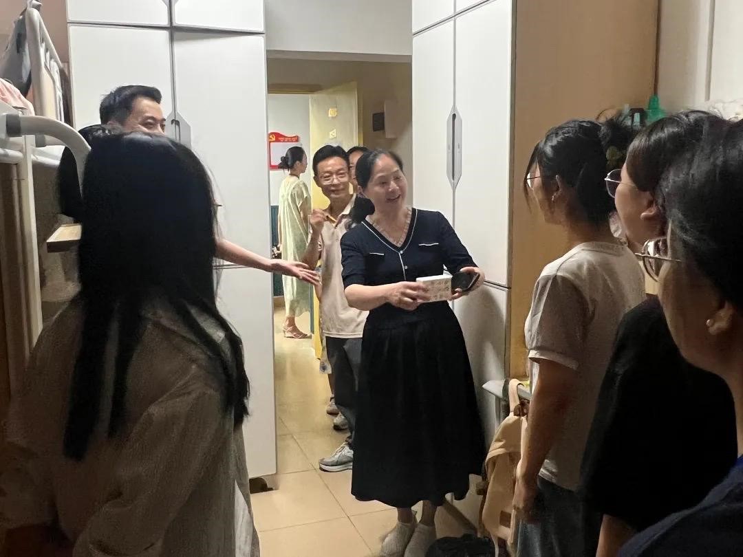 寝室是大学生最重要的生活场域之一。为了帮助学院新生尽快适应校园生活,在迎新报到之前学院精心组织大二、大三的学生骨干成立学长学姐互助中心,开展寝室迎新精准对接,以帮助24级新生尽快了解学校情况。同时,学院领导和老师也牵挂着大一新生的生活情况,9月8日晚七点半,学院领导、新生班主任、辅导员深入新生寝室了解情况,为同学们送上最真挚的问候和鼓励。