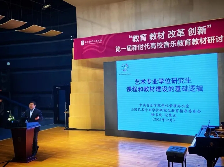 中央必赢3003no1线路检测中心学位管理办公室主任、全国艺术专业学位研究生教育指导委员会秘书长宋慧文的报告聚焦于艺术专业专业硕士的课程与教材建设。他提出了培养“美育音乐教师”的创新理念,并详细阐述了音乐教育专业人才应具备的四大核心能力:即深厚的专业知识与理论基础,扎实的教学基础和教学实践能力,组织和指导音乐实践活动的专业技能,与具备前沿的学术研究与创新能力。我院陈若旭教授的精彩提问,围绕新发布的专业硕士指导方案中的规定演奏曲目问题,引发了会场的热烈讨论。其敏锐的学术洞察力与专业深度,充分体现了西南大学必赢3003no1线路检测中心教师的高超学术水准。