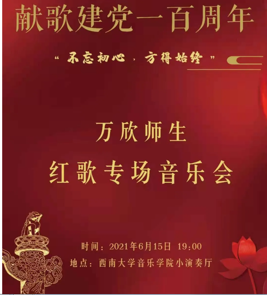 预告|6月15日,庆祝建党百年万欣师生红歌专场音乐会