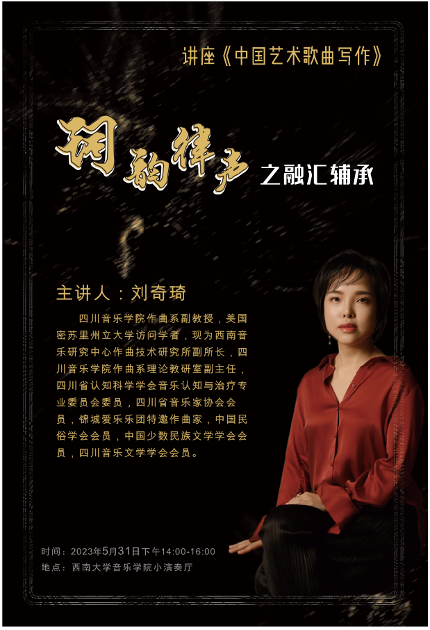 预告:2023年5月31日学术讲座:中国艺术歌曲写作---词·韵·律·声之融汇辅承