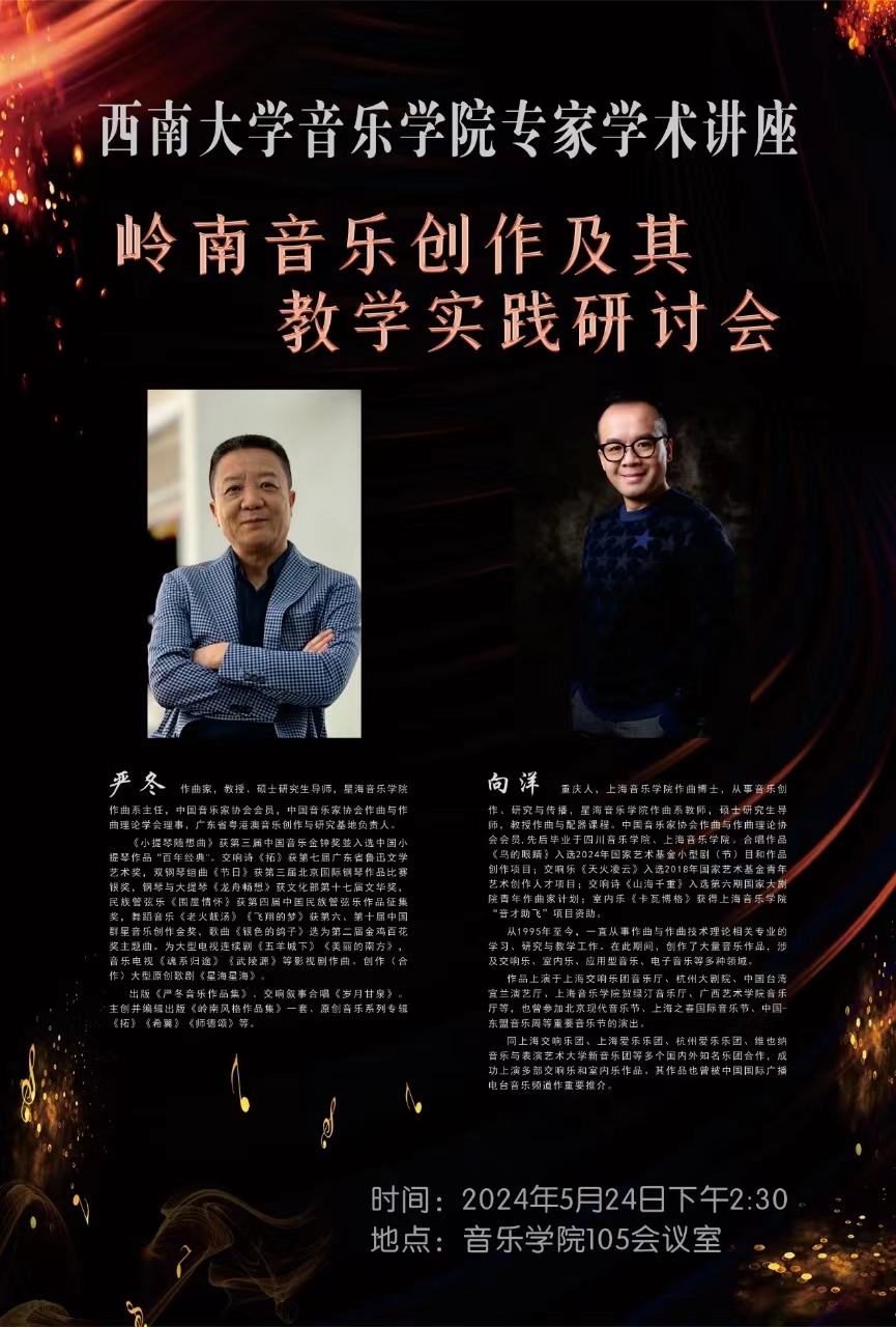 预告|2024年5月24日下午2:30 岭南音乐创作及其教学实践研讨会