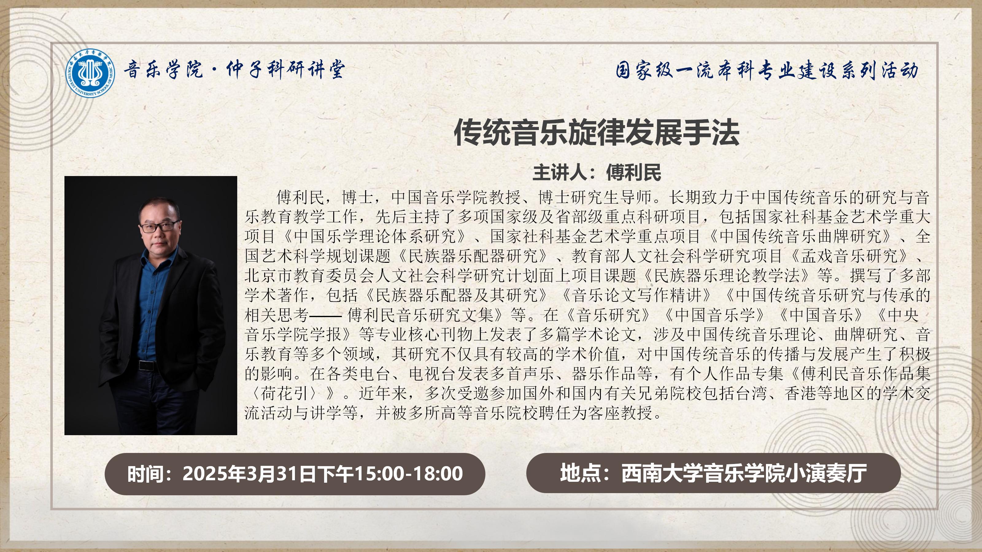预告|3月31日 传统音乐旋律发展手法 傅利民