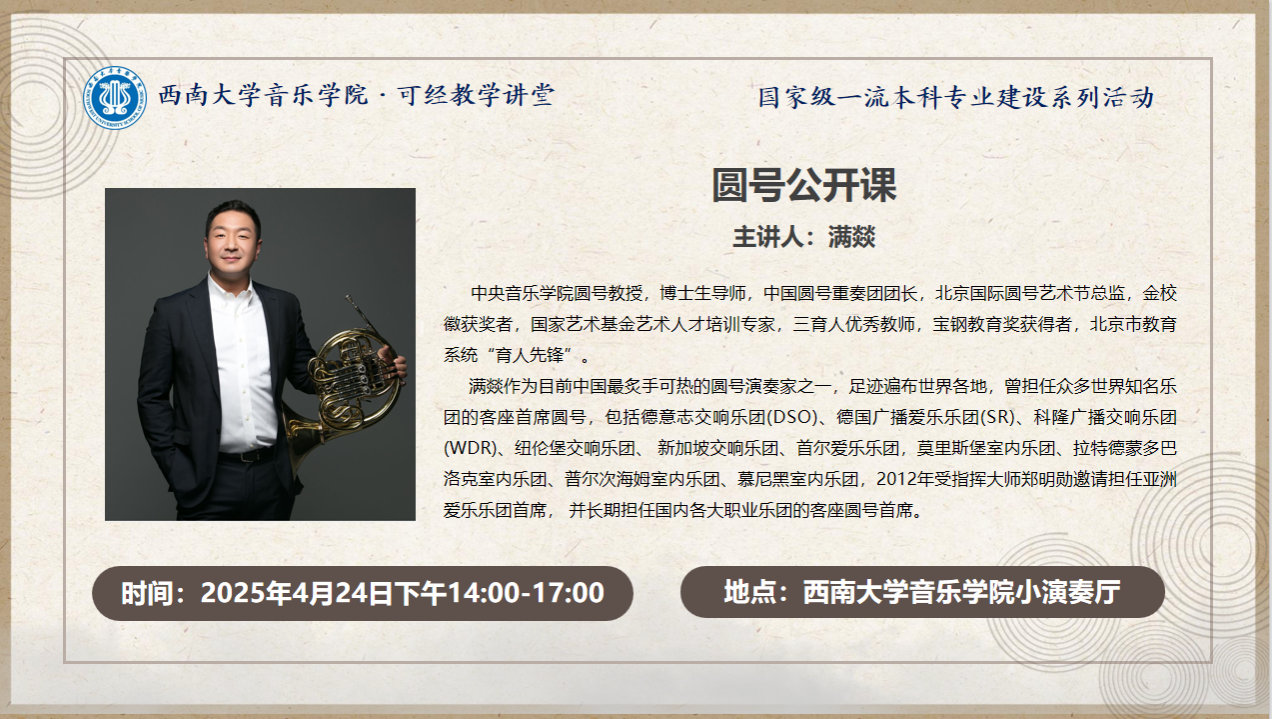 预告|4月24日 满燚教授圆号公开课