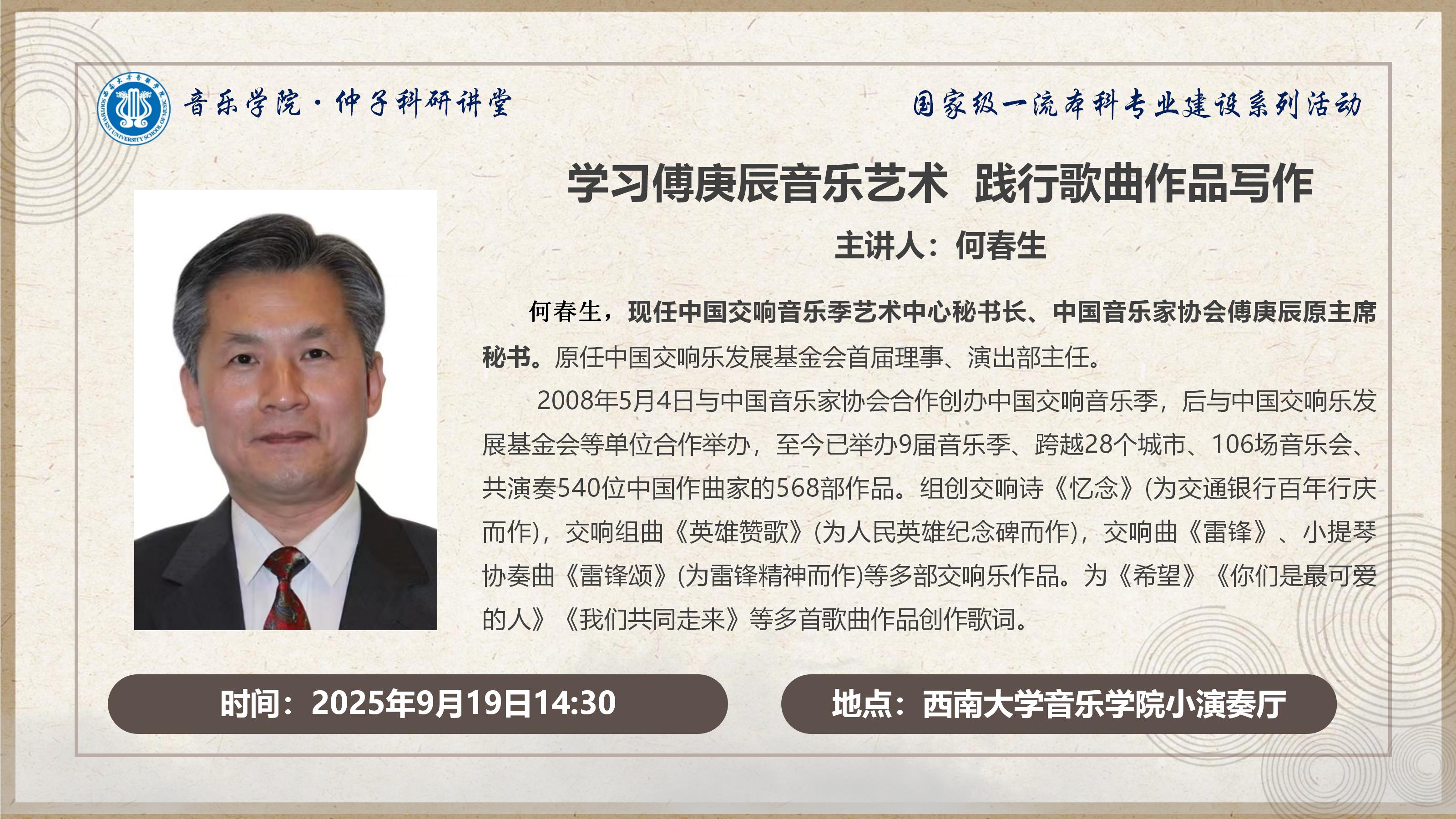 预告 | 仲子科研讲堂:9月19日14:30 何春生《学习傅庚辰音乐艺术 践行歌曲作品写作》