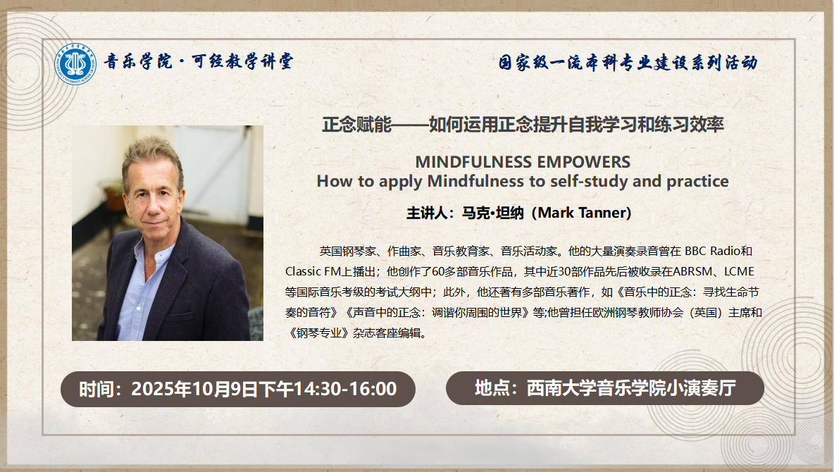 预告|必赢3003no1线路检测中心:10月9日14:30—16:00马克·坦纳(Mark Tanner)《正念赋能--如何运用正念提升自我学习和练习效率》