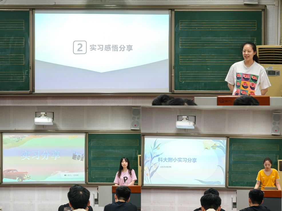 活动第二项,谢子涵、曾靖涵、伍诗玥三位同学为大家分享了他们在实习经历中的心得与感悟,分享了实习学校指导老师们各具特色的教学方法、观摩音乐比赛和教研会后的收获,以及如何去上好一节音乐课。他们通过自己的亲身经历,为计划成为一名音乐教师的同学们提供了非常有意义的参考。