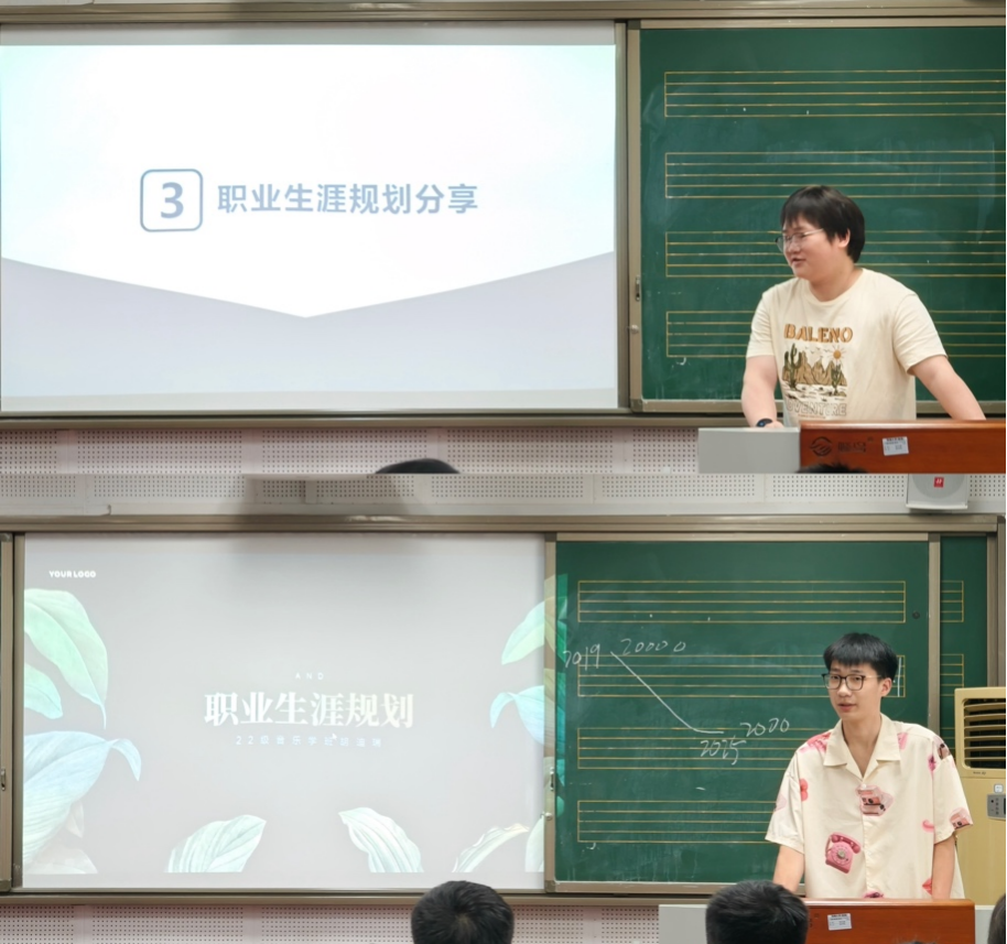 为了提升同学们的自我认知与职业探索能力、促进职业选择与未来规划能力,2025年6月6日,2022级音乐学班开展班级生涯规划主题交流活动,由班主任黄君老师、辅导员黄垭飞老师参加了本次活动。