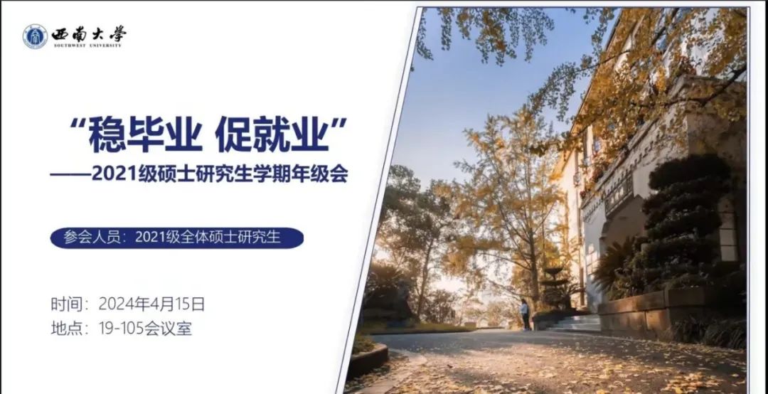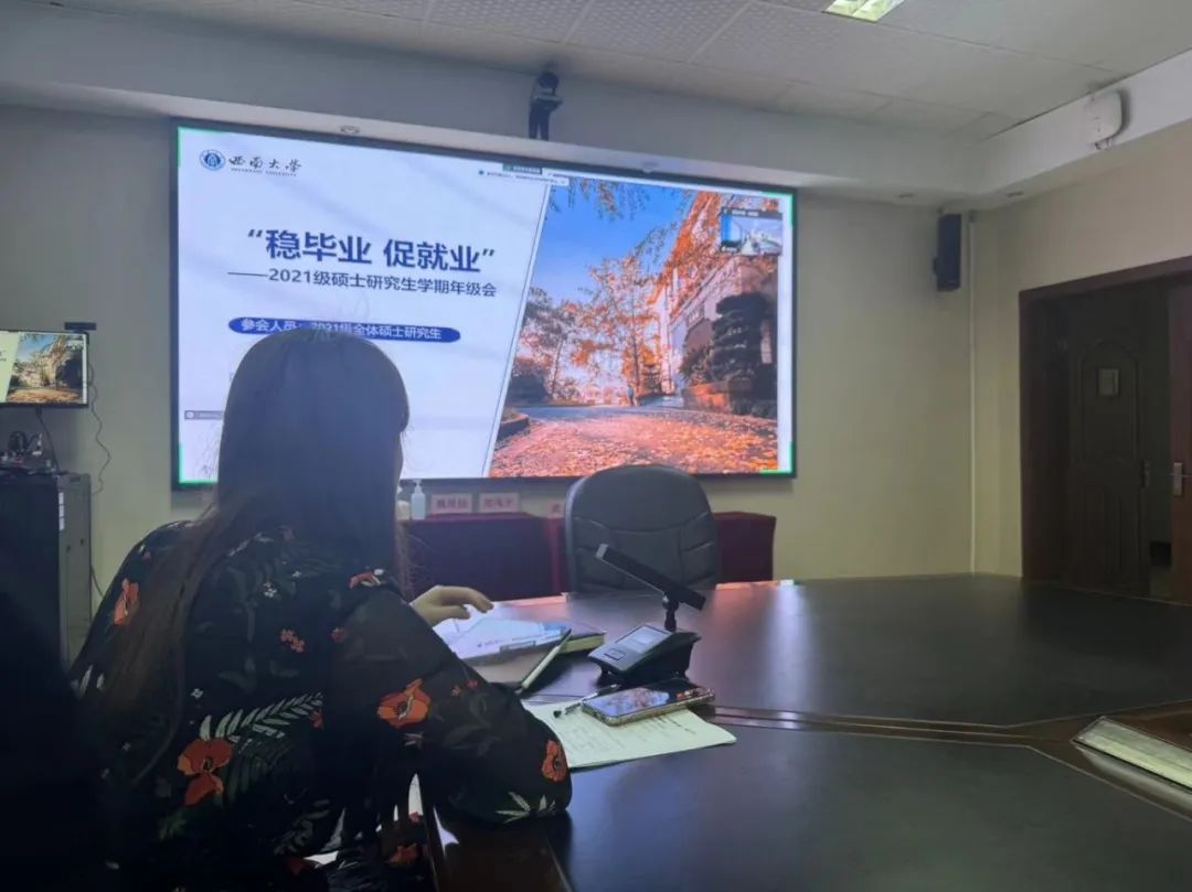 为顺利推进2024届硕士研究生毕业及就业重点工作,帮助毕业硕士研究生明确毕业阶段任务,缓解毕业焦虑情绪,研究生辅导员向晓慧老师带领2024届全体硕士研究生于4月15日中午13:00线上结合线下开展“稳毕业,促就业”毕业年级座谈会。会议由研究生辅导员向晓慧老师主持。