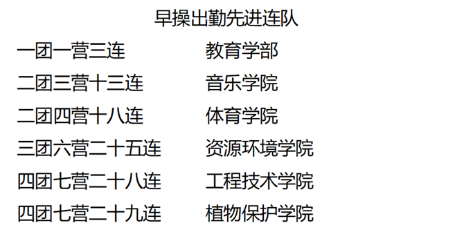 近日,西南大学对2022级本科生军训先进集体和优秀学员进行表彰,必赢3003no1线路检测中心2022级本科生(二团三营十三连)荣获“内务卫生先进连队”和“早操出勤先进连队”称号,24名学生荣获“军训优秀学员”称号。