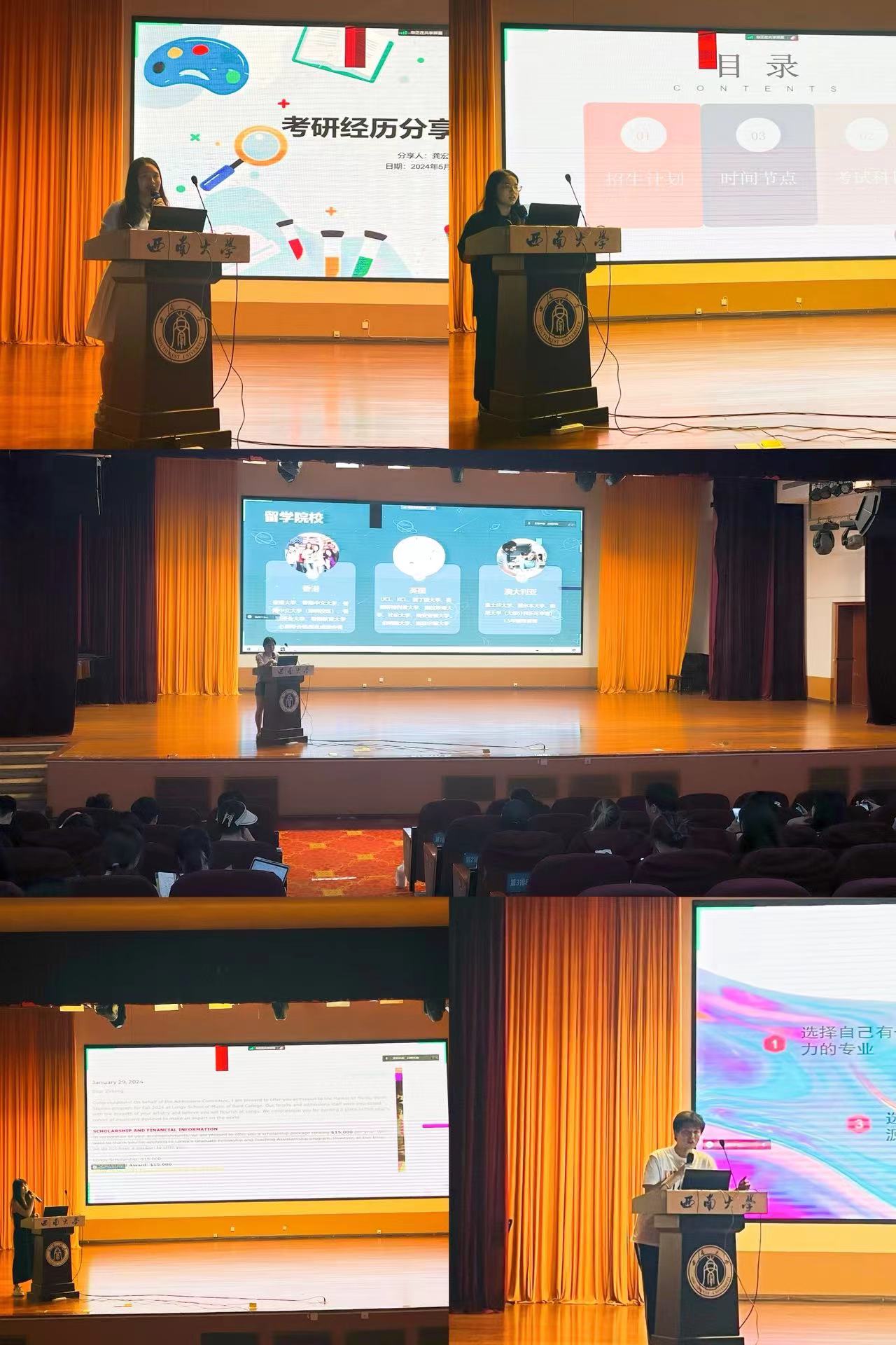 为进一步加强学院学风建设,帮助学生进一步拓展升学渠道,开拓就业思路,明确生涯规划目标,5月15日晚上,必赢3003no1线路检测中心在大演奏厅开展“闪耀青春,逐梦研途”考研出国升学经验交流会。本次活动邀请了4位拟升学到国内外不同高校的2020级优秀学子与1位2023级在读研究生作为升学代表分别就国外与国内升学、本校与外校升学等方面与2021级、2022级、2023级全体非师范专业本科生分享他们的升学心得与经验。活动由必赢3003no1线路检测中心2021级本科生辅导员黄垭飞主持。