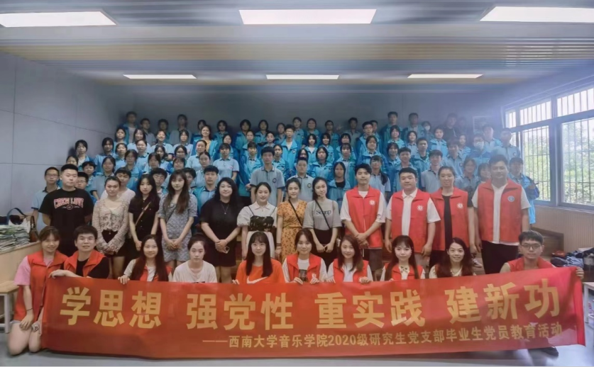 为深入学习贯彻习近平新时代中国特色社会主义思想主题教育“学思想、强党性、重实践、建新功”的总要求,秉纲而目自张,执本而末自从。5月30日,在2020级研究生党支部书记向晓慧老师的带领下,2020级研究生党支部全体党员联合2022级研究生调研实践团一同前往重庆市北碚区兼善中学组织“学思想、强党性、重实践、建新功”2020级研究生毕业生党员主题教育暨2022级音乐教育方向研究生主题调研活动,开展调研、访谈、实践行动。