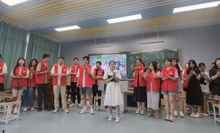 活动最后,支部书记向晓慧老师带领全体党员合唱《万疆》,“主旋律”在教室里声声回响。短暂的课堂交流,同志们带去的是美的享受,是思想引领;收获的是使命感与责任感的激发,也为即将走向一线的毕业生们燃起信心的火把。