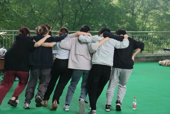 团队并肩行:六人参加,相邻队友相互搭肩,S型绕桩,用时最短的组获胜。培养队友之间的凝聚力和领导人的执行力。