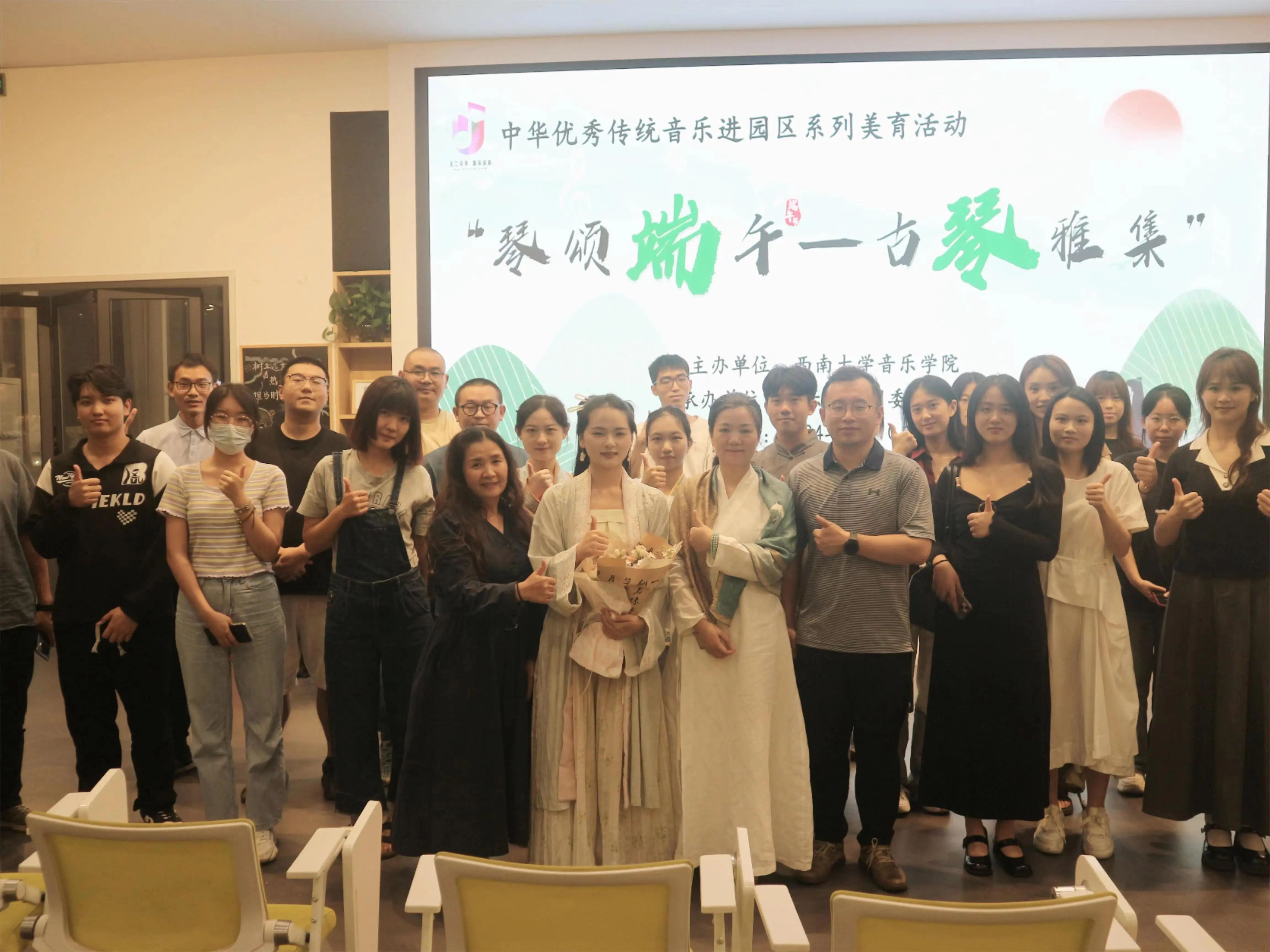 本次活动由西南大学必赢3003no1线路检测中心音乐专业音乐与舞蹈教育(古琴)方向硕士,重庆北碚古琴协会理事刘晶为在场师生带来“琴颂端午,古琴雅集”的精彩分享。刘晶学姐曾参加重庆国泰艺术中心《弦动秋山·微音雅集·王熹古琴音乐会》、《重庆·望园雅集音乐会》、《重庆北碚古琴协会成立音乐会》、《成都国际古琴艺术节·重庆微音琴社音乐会》等古琴艺术演出活动。并受邀参加过西南大学举办的《民乐重奏音乐会》、《界画·青绿展览》开幕式表演、西南大学国际学院与国家治理学院主办《第十六届国际文化节暨十五届哲学月系列活动—禅意空间》系列活动、西南大学研究生会主办《品读精典之韩非子》以及由重庆市北碚区文化和旅游发展委员会主办的《国际盲人节暨第十届“音你而生”文艺沙龙等中国文化交流活动。