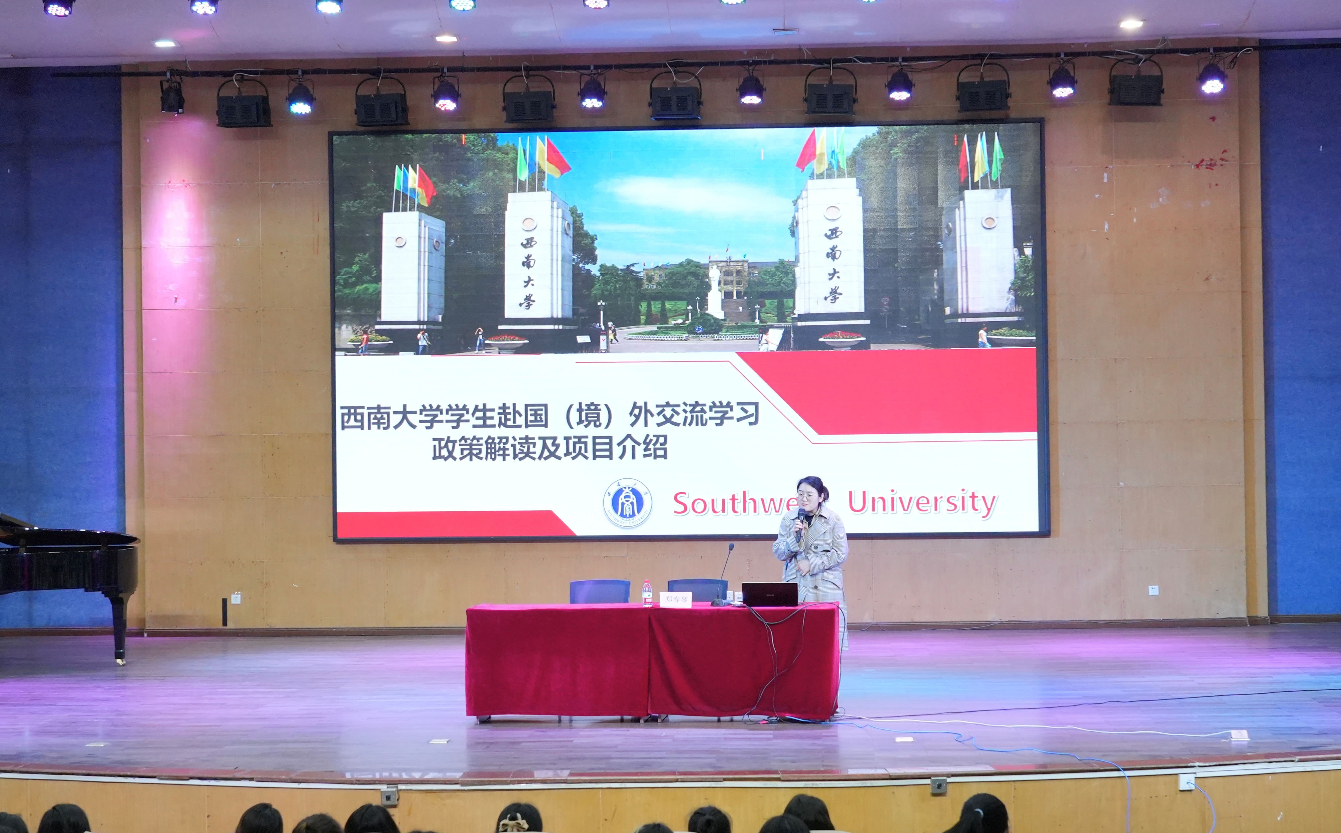 分管国际交流合作的黄君副院长主持讲座,她全面介绍了必赢3003no1线路检测中心在推动国际交流合作工作中所做的努力和成效,播放了学院出国访学归来的同学分享访学体验的视频,激励在场学生要抓住学习机遇、勇于突破和挑战自己,尽早准备语言考试。她还表示,新时代新征程,作为一名大学生,应该放眼国际视野练本领、锻造沟通中外的能力,用音乐来传播中国声音、讲好中国故事,促进不同文明之间的对话与交流,承担时代使命。