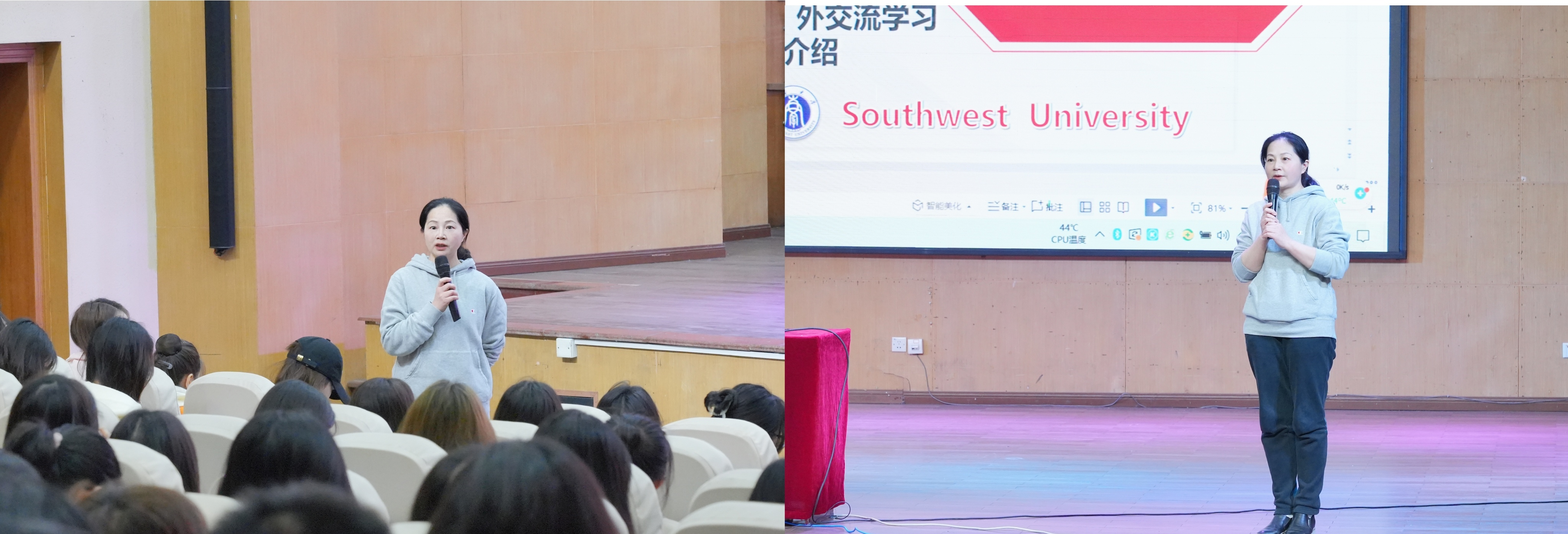 为更好推进和服务学院国际化人才培养工作,帮助广大学生深入了解出国(境)交流学习项目和经费资助政策,激发学生参与国际交流学习积极性,必赢3003no1线路检测中心于3月16日邀请到国际合作与交流处郑春琴、戴璐两位老师做专题讲座,大一、大二全体学生及部分研究生参加讲座。