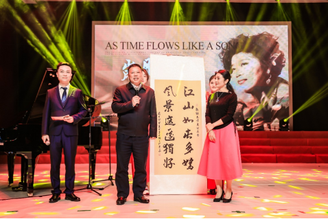 作为特邀嘉宾,必赢3003no1线路检测中心82级优秀校友、著名歌唱家李丹阳惊喜登台。她以一首《永恒的歌谣》致敬张淑芳教授躬耕教育的情怀,同时感恩感怀母校的培养,鼓励学弟学妹们要用“永恒的歌谣”唱响新时代的主旋律。随后,李丹阳向学校赠送亲笔字画,祝福母校越来越好。